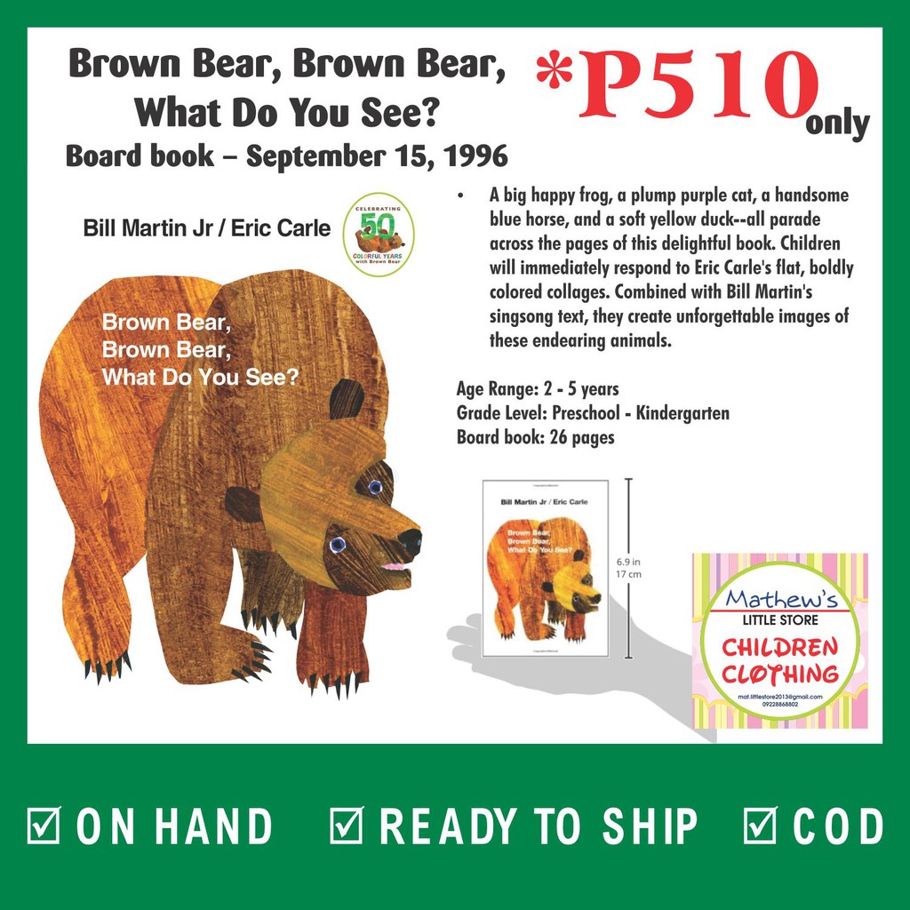 Brown Bear Brown Bear What Do You See Book Shopee Philippines from cf.shopee.ph Brown bear brown bear what do you see? I see a red bird looking at me. I still (and yes, even years later) cannot even remotely fathom that bill martin junior's classic and universally beloved by young children brown bear, brown bear, what do you see? Look for opportunities to teach retelling strategies—for example, using the pictures in the book as sequencing clues. The repetitive text reinforces patterning, color concepts, and animal names. The wonderful book of brown bear, brown bear, what do you see? While the story has no plot, it has a predictable, repetitive text. Über 7 millionen englische bücher.